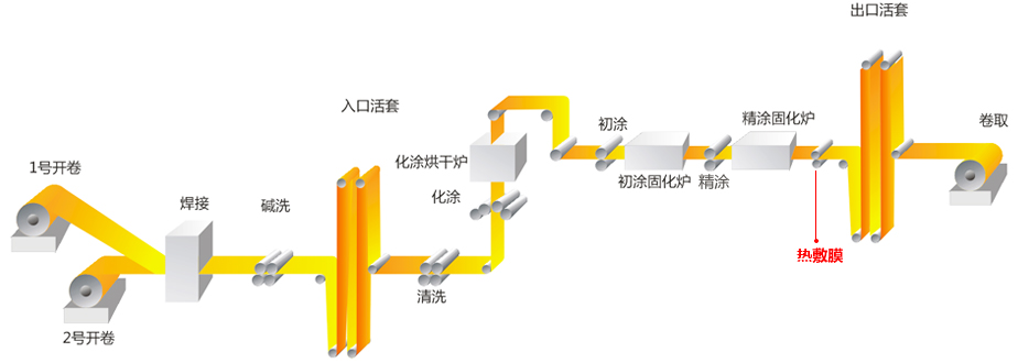 熱覆膜板是指在鋼板表面復合PET+PVC或PVC或單層PET 等復合膜的彩色層壓鋼板。熱覆膜板具備了金屬材料良好的強度及加工性能,同時也具備了高分子薄膜優異的裝飾性能、耐腐蝕性能、耐候性能、耐污染性能等。